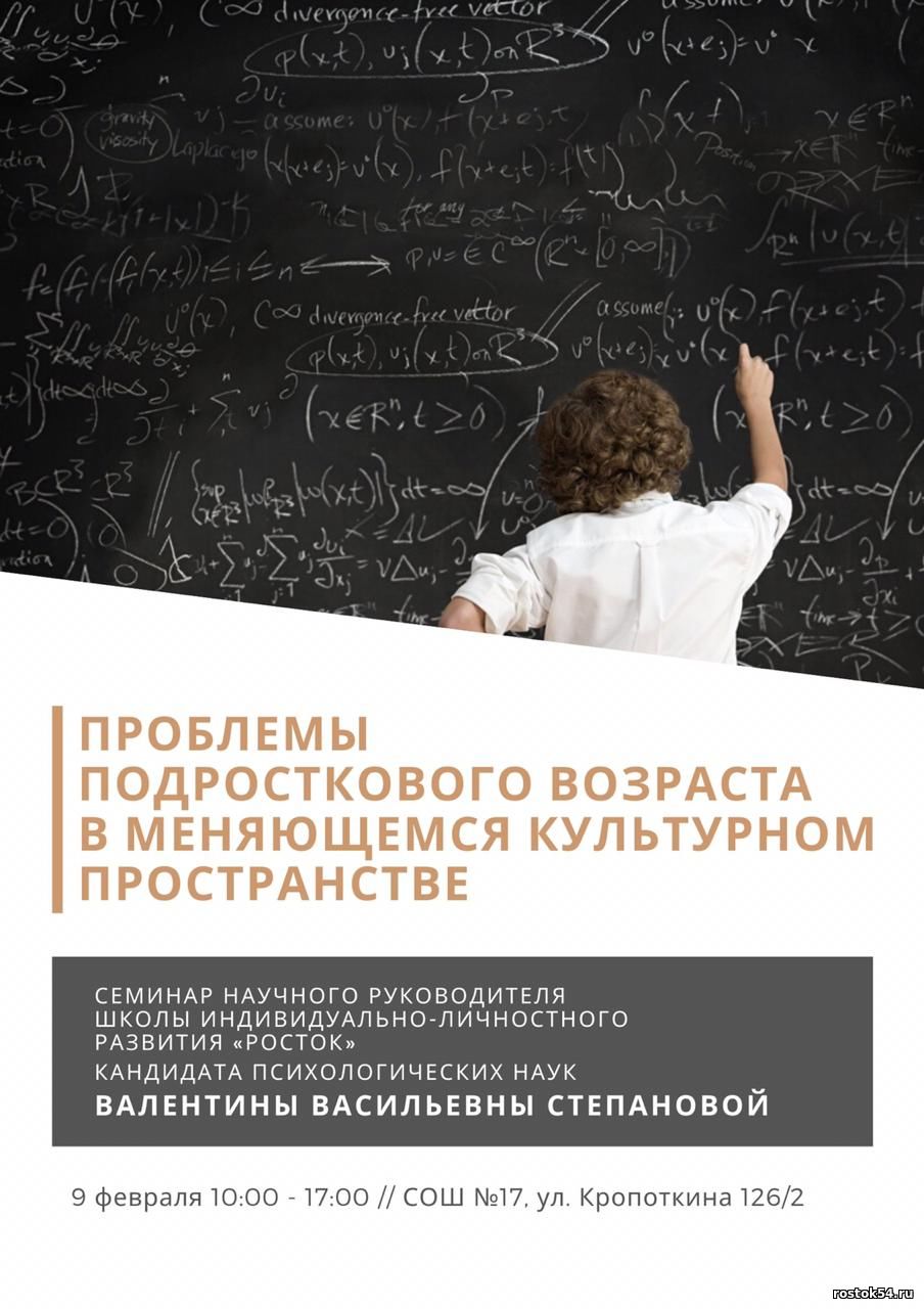 Приглашаем на продолжение семинара Степановой В.В. о подростках.